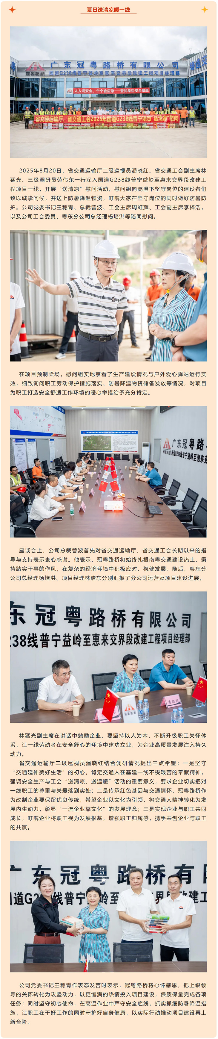 省交通运输厅、省交通工会赴国道G238线普宁益岭至惠来交界段改建工程项目开展“送清凉”慰问活动