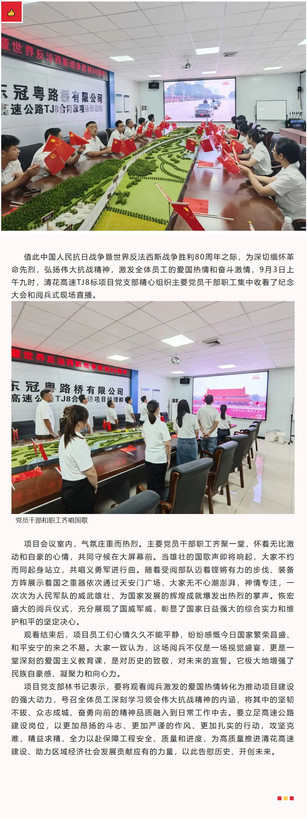 清花高速TJ8标项目组织观看纪念中国人民抗日战争暨世界反法西斯战争胜利80周年大会阅兵仪式