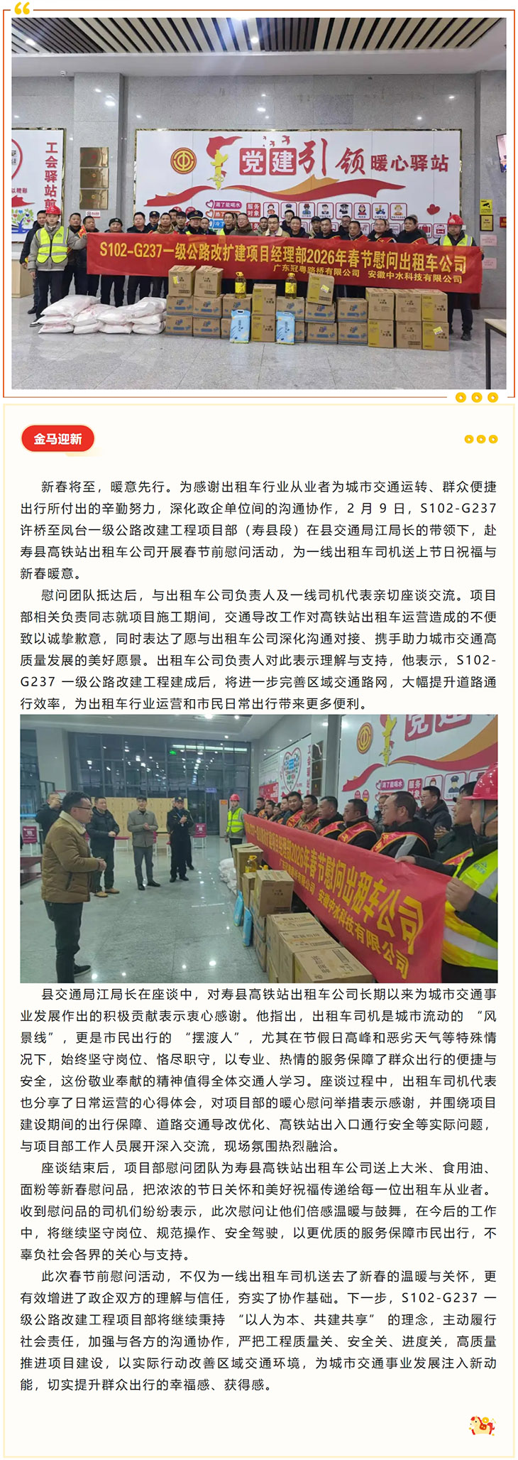 走访送温暖 慰问暖人心 ——S102-G237 改建工程项目部开展 2026 年春节前出租车公司慰问活动