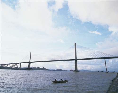 崖门大桥座落在崖海古战场附近,跨越崖门出海口。全长1296m,为双塔单索面混凝土斜拉桥,塔高128m,主跨338m,该跨径在国内同类桥梁中排行第一,亚洲第二。崖门大桥工程于1998年9月26日正式开工,2001年10月20日主桥合拢。建成后的崖门大桥将对改善珠三角的投资环境、促进西部沿海地区的经济发展起到重要作用,堪称“粤西明珠”。2006年,崖门大桥获第六届中国土木工程詹天佑奖。