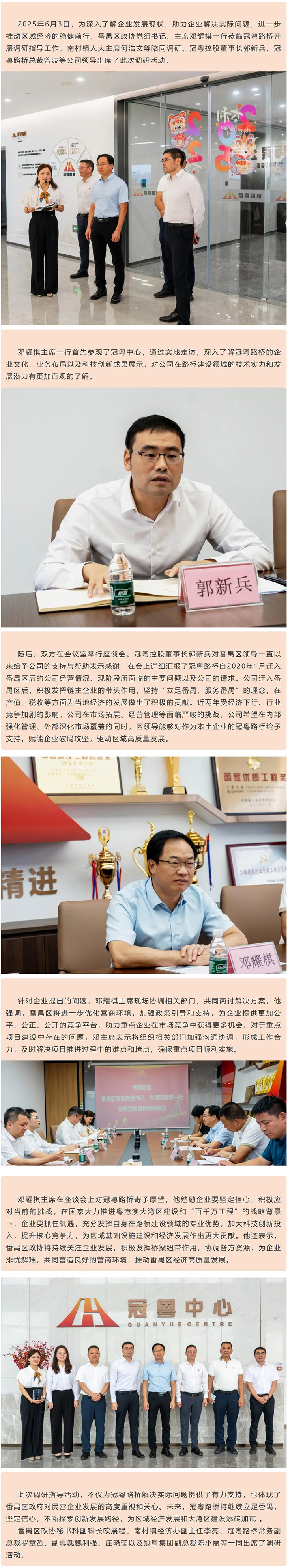 番禺区政协党组书记、主席邓耀棋一行调研冠粤路桥