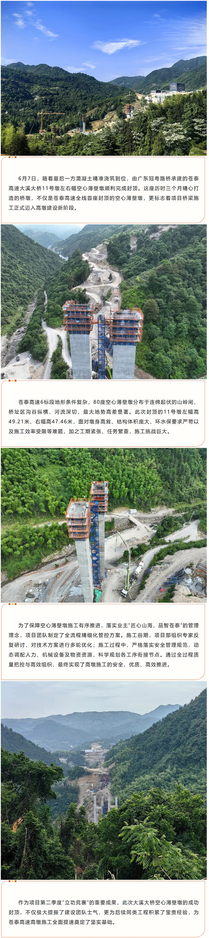捷报!冠粤承建苍泰高速全线首座空心薄壁墩顺利封顶