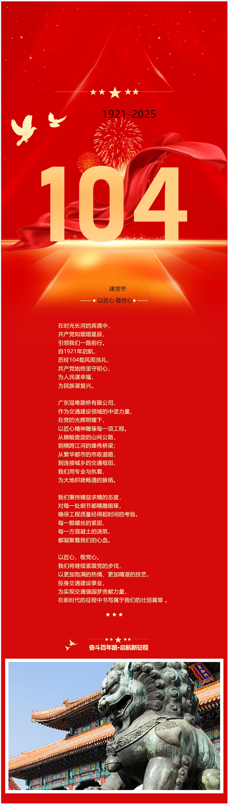 以匠心 敬党心热烈庆祝中国共产党成立104周年